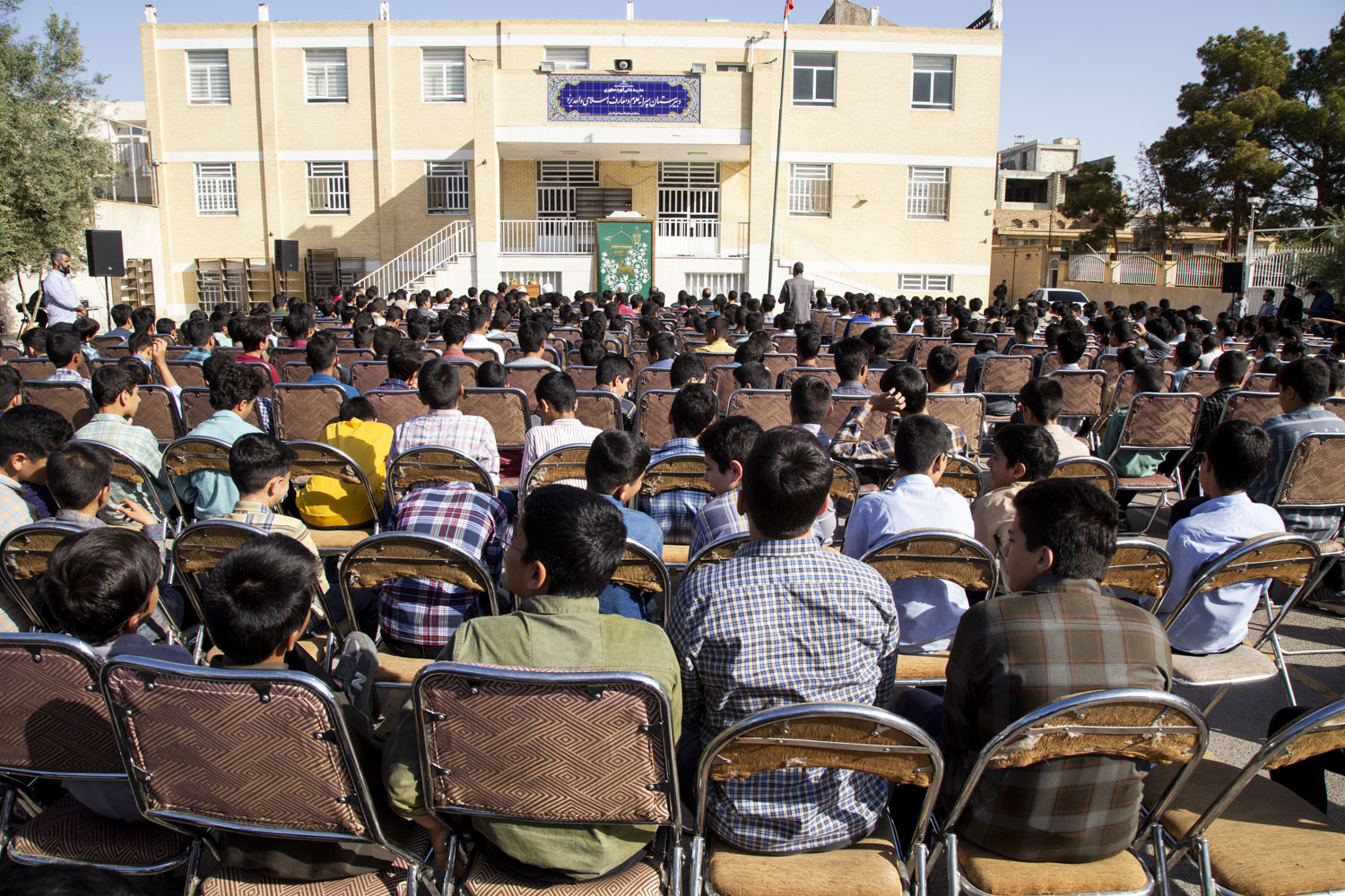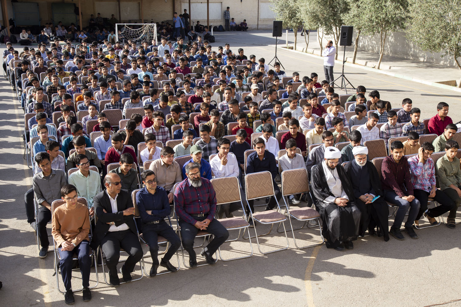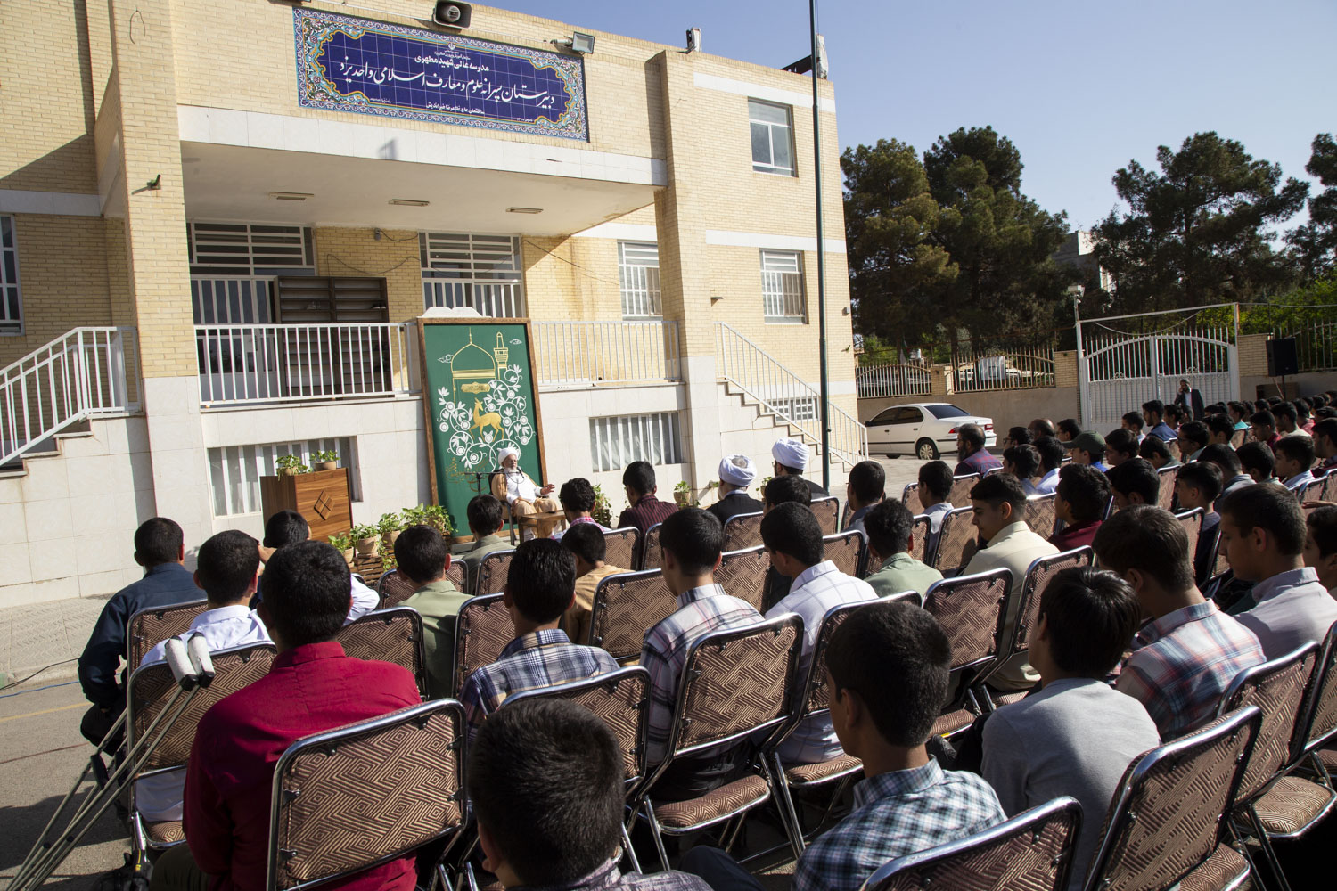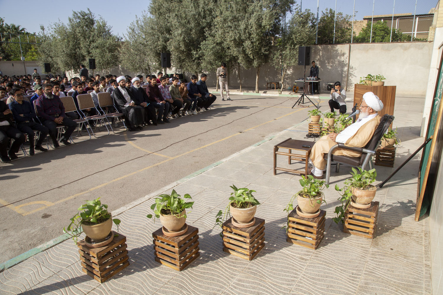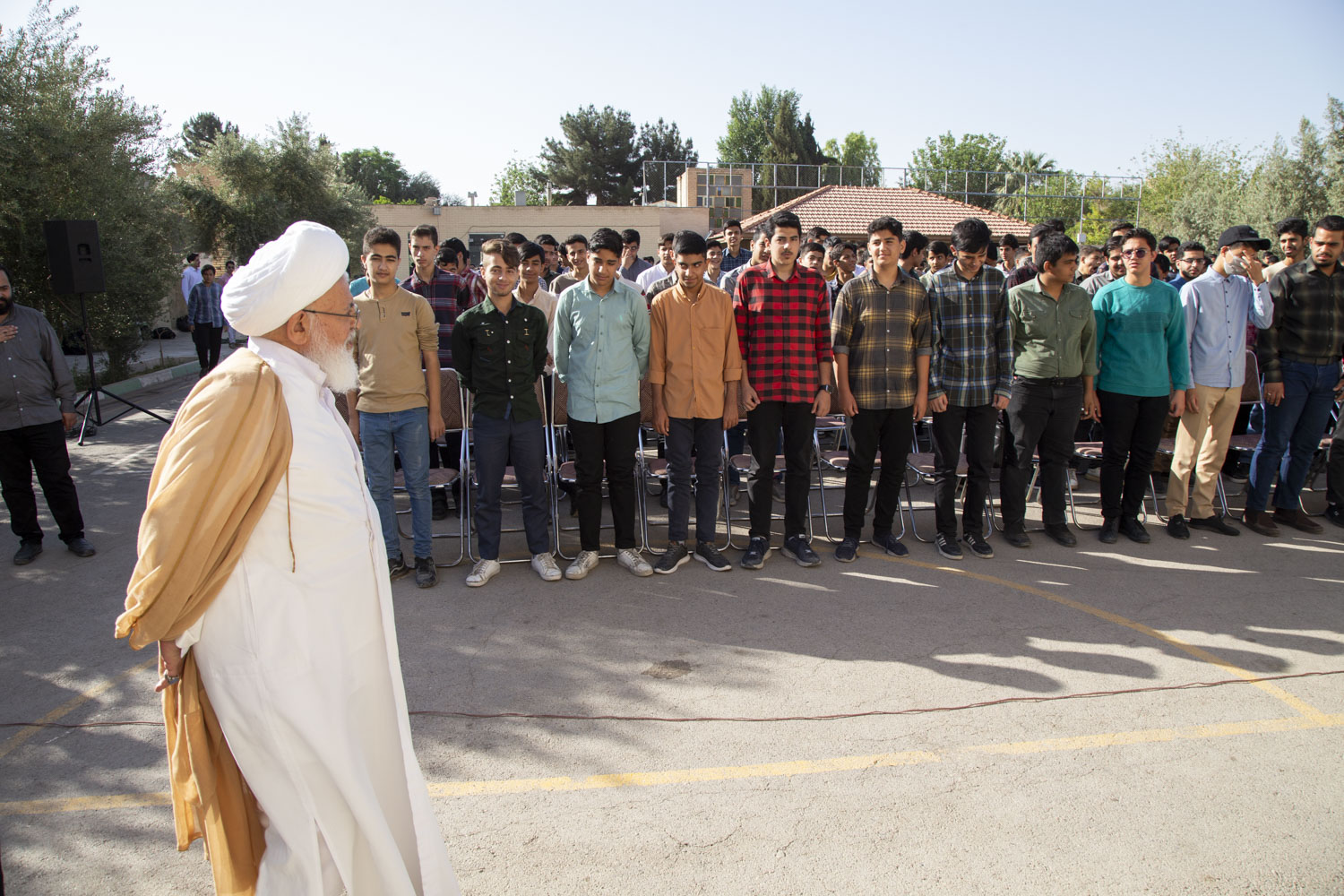 حضور آیت الله محمدرضا ناصری یزدی نماینده ولی فقیه در استان و امام جمعه یزد در دبیرستان پسرانه علوم و معارف اسلامی به مناسبت هفته معلم